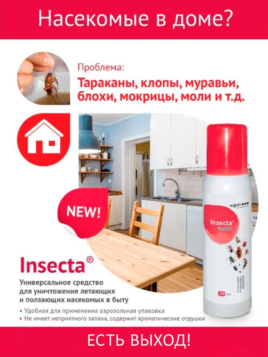 | Вид насекомых : | блохи, клопы, комары, мокрицы, муравьи, мухи, сверчки, тараканы, уховертки, чешуйницы |