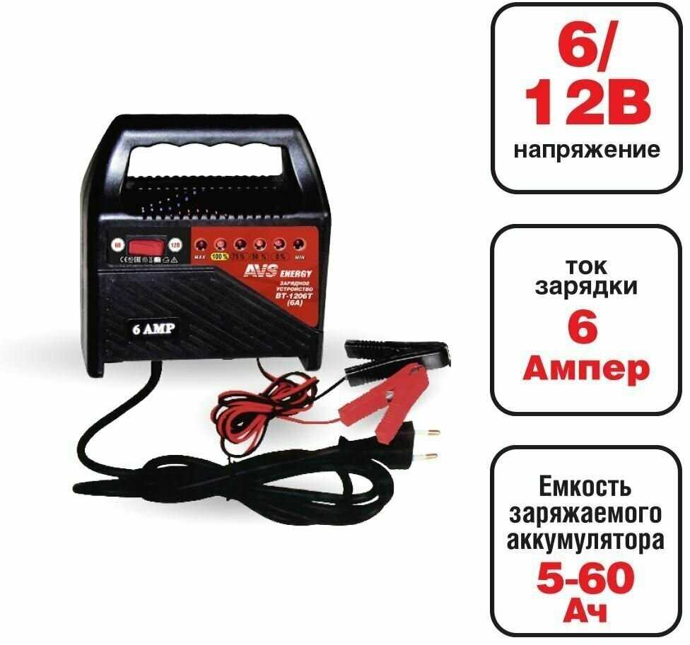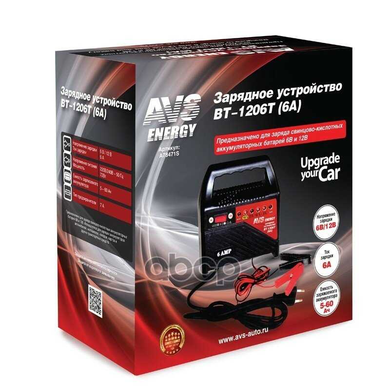| Подробная комплектация : | Устройство зарядное AVS 6/12V 6A BT-1206T 1 шт. |