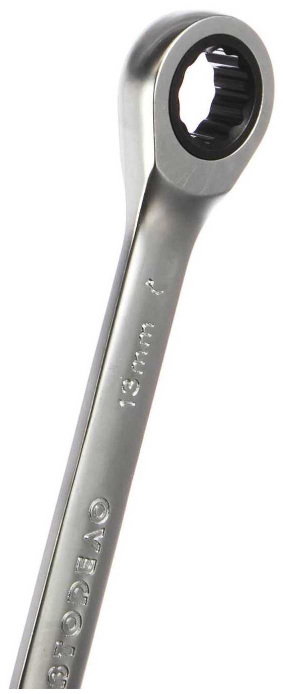 | Дополнительная информация : | Изготовлены из хром-ванадиевой инструментальной стали методом горячей штамповки (ковки на молотах). Имеют стандартный открытый зев и кольцевую часть с двенадцатигранным рабочим профилем. Трещоточный механизм кольцевой части с 72-мя зубцами, обеспечивающий минимальный рабочий ход ключа 5°. Термически обработаны до твёрдости 39-41 HRC. Защищены от коррозии хромоникелевым покрытием с эффектом матовой поверхности. |