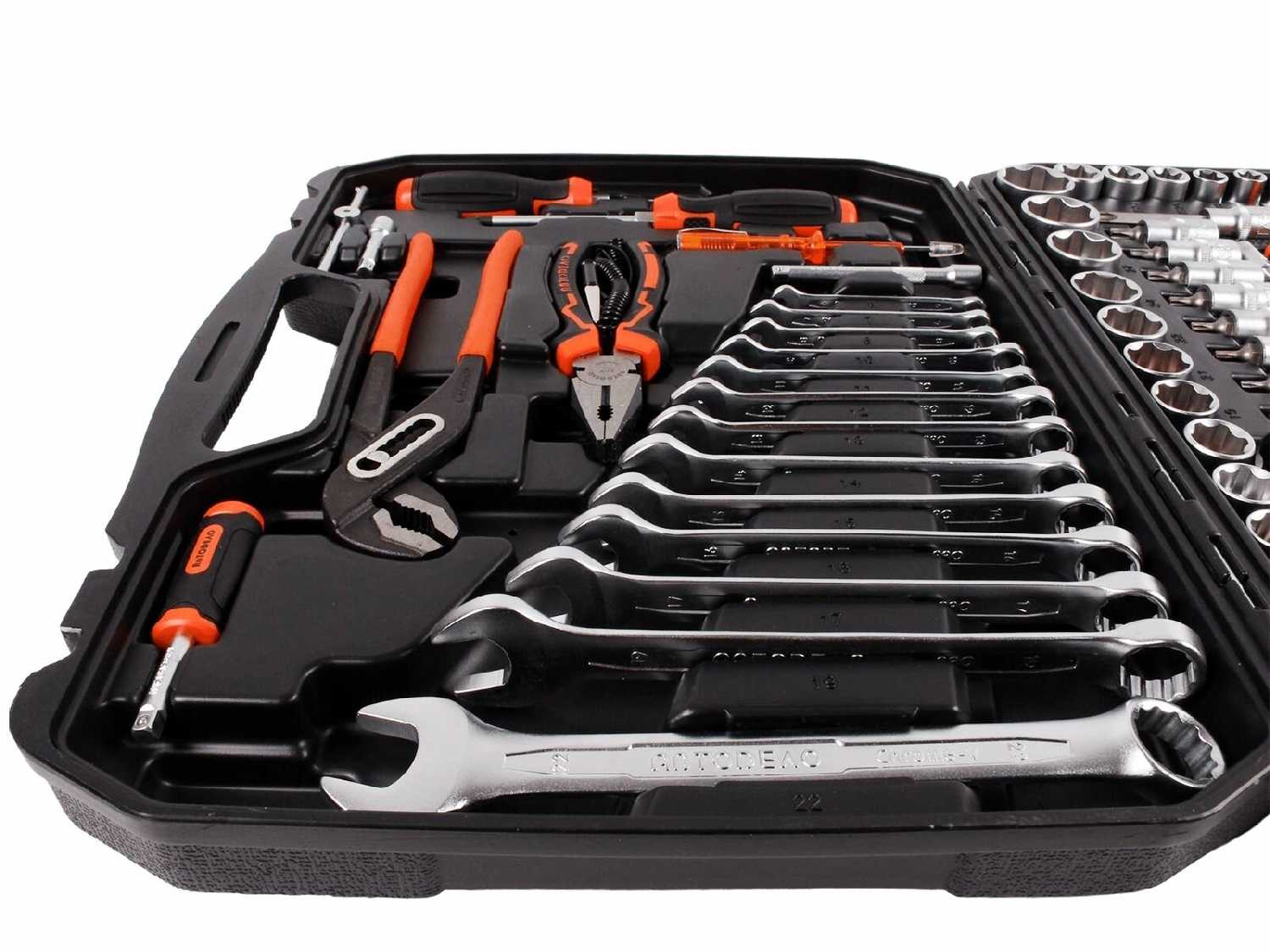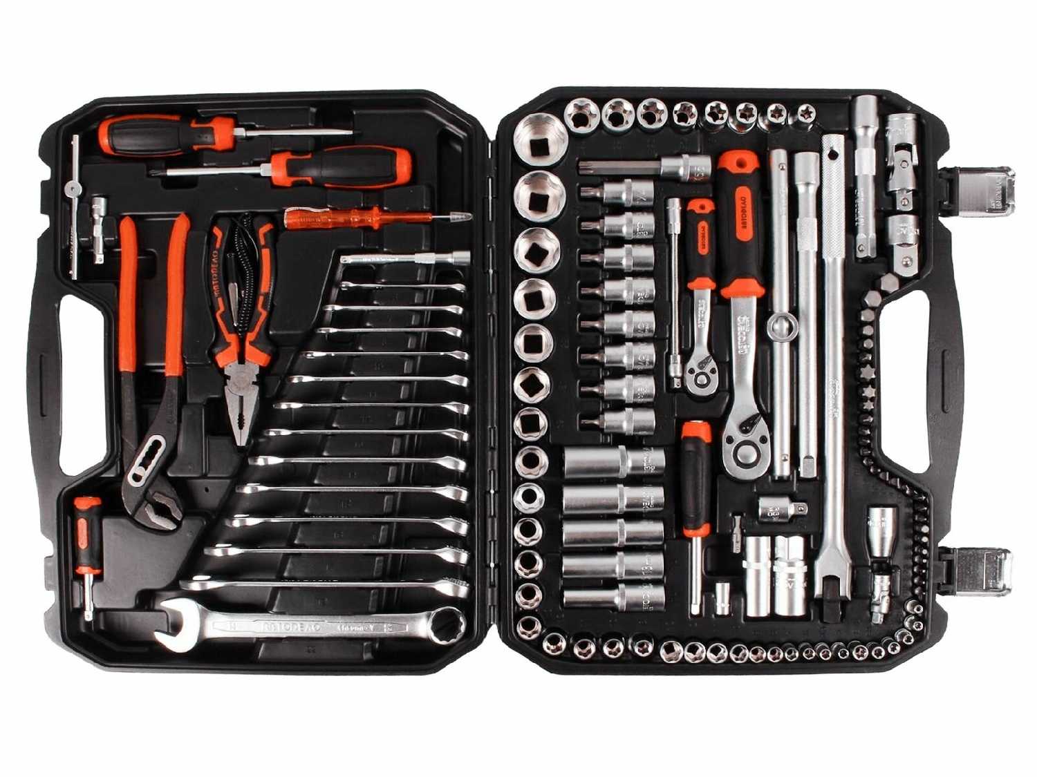 Инструменты в комплекте : | ключи гаечные, отвёртки, пассатижи, трещотка |