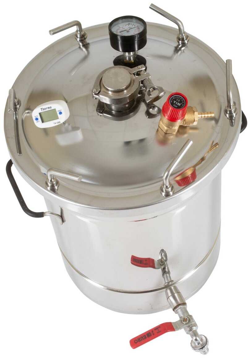 Домашний погребок нерж, манометр, термометр, клапан сброса изб. давления