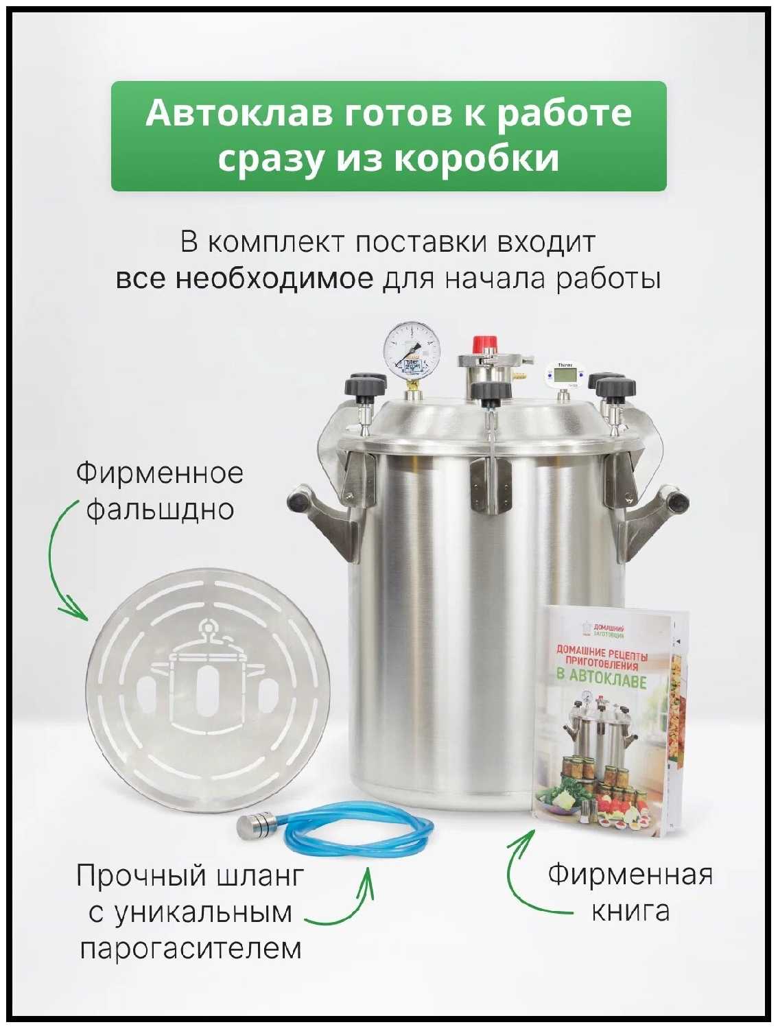 - автоклав добротный. все качественно сделано. тестовый прогрев в автоматическом режиме прошёл достойно, ни где не травит, герметичность отличная. ( пока ) в сочетании с автоматик...
