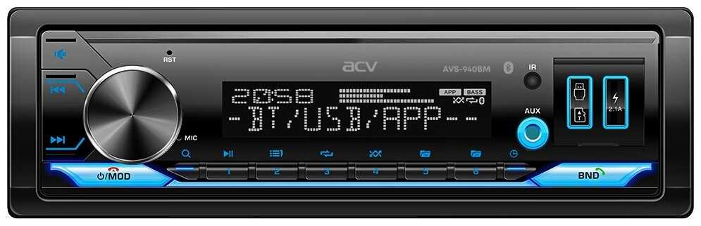ACV AVS-940BM (1din/мультицвет/BT/2USB/AUX/SD/FM/3RCA/SUB/QC/4*50)