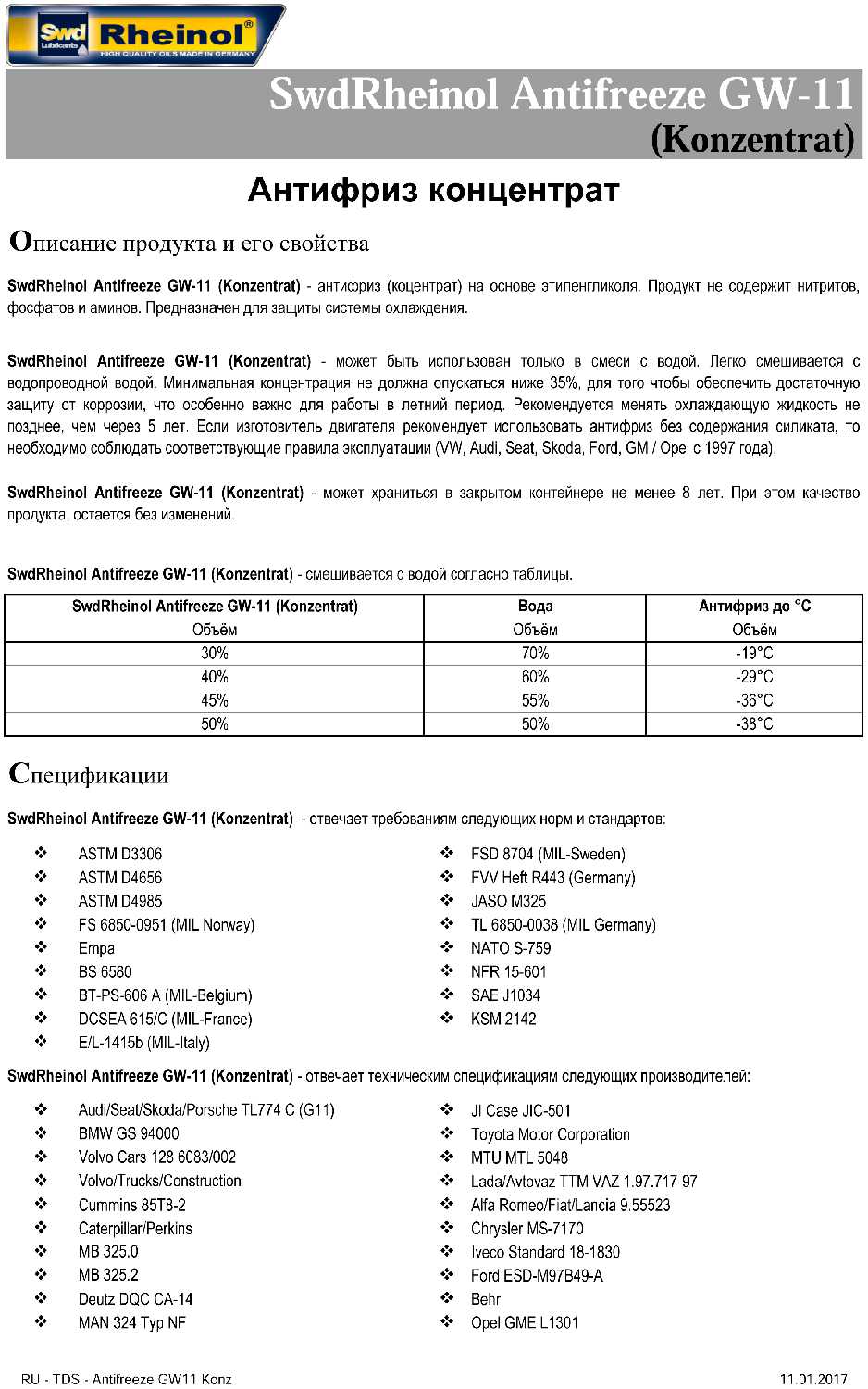 - индекс допуска VAG: G-11