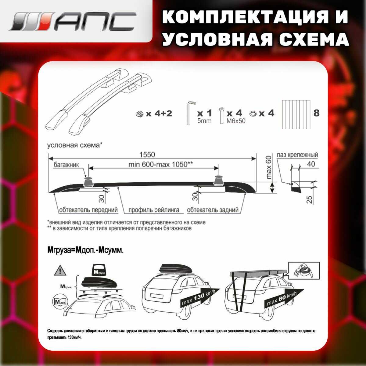 - место крепления: на интегрированные рейлинги