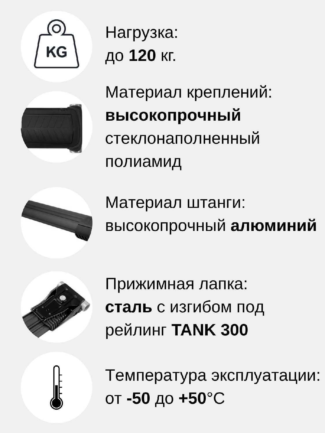 - место крепления: на интегрированные рейлинги