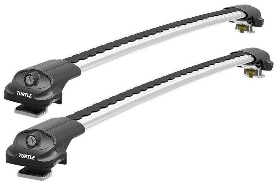 Can Otomotiv Багажник TURTLE Tourmaline V1 (106) на стандартные рейлинги Ниссан Террано SUV 3/5 дв. 1993-2006 аэродинамические поперечины с замком (серебро)
