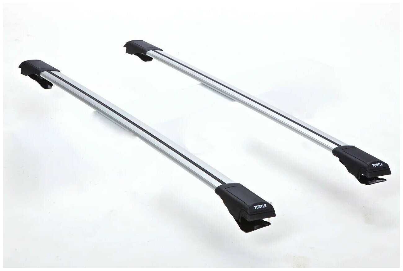 Can Otomotiv Багажник TURTLE Tourmaline V1 (106) на стандартные рейлинги Сеат Альтеа MPV 5 дв. 2007-н. в. аэродинамические поперечины с замком (серебро)