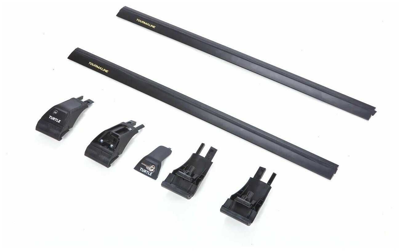 Can Otomotiv Багажник TURTLE Tourmaline V1 (106) на стандартные рейлинги Тойота Авенсис Версо MPV 5 дв. 2001-2006 аэродинамические поперечины с замком (черный)