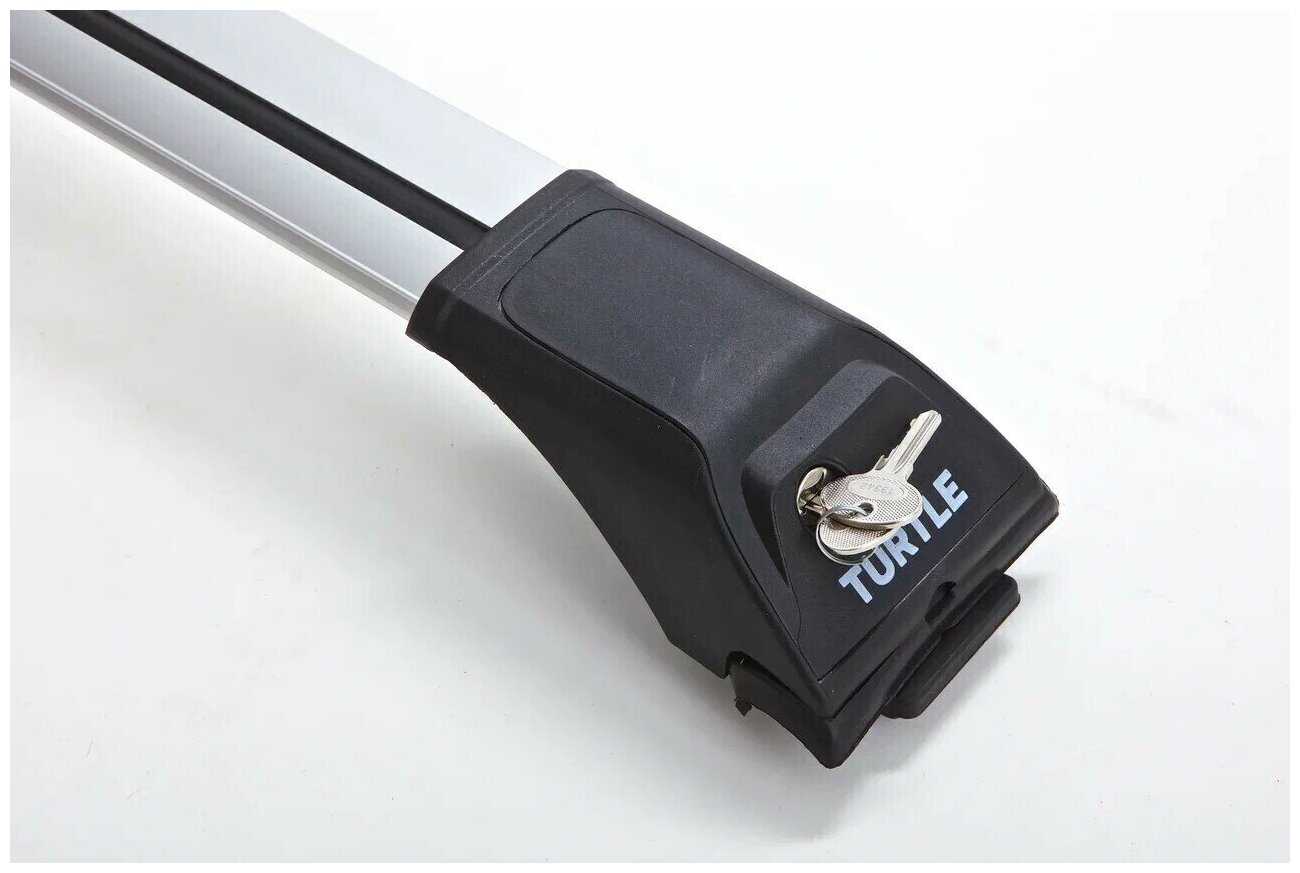Can Otomotiv Багажник TURTLE Tourmaline V1 (106) на стандартные рейлинги Пежо 1007 Хэтчбек 5 дв. 2005-н. в. аэродинамические поперечины с замком (серебро)