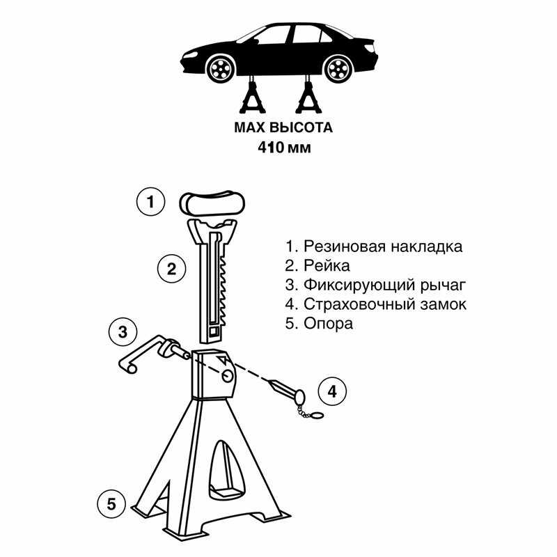 - высота подъёма: 410 мм