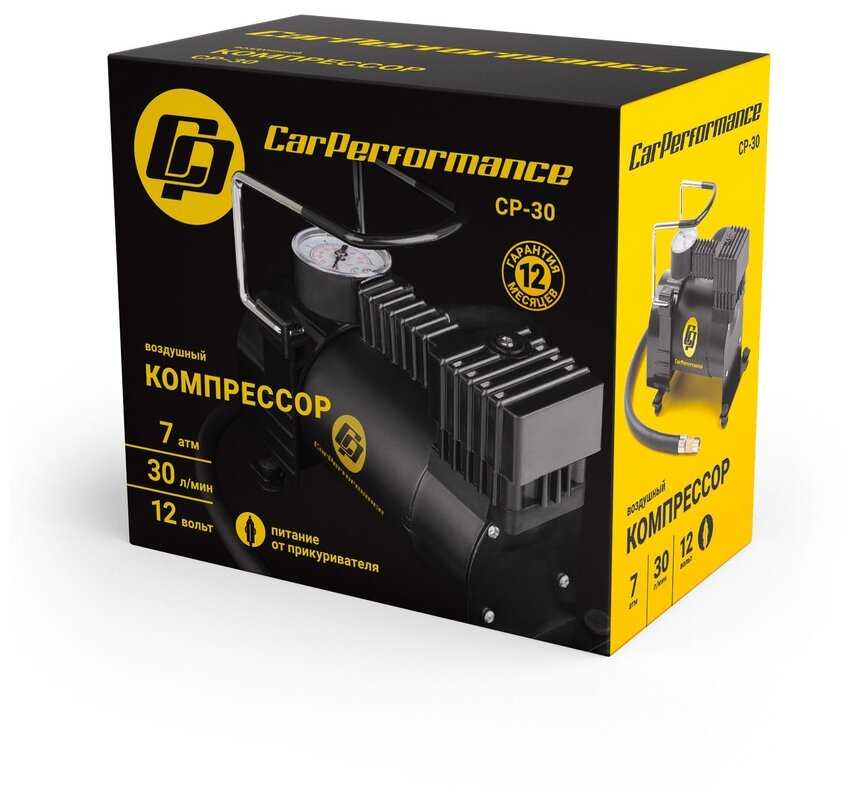 Компрессор воздушный CAR PERFORMANCE CP-30, 30 л./мин., 12V/12A, 140W, 7 Атм., шланг 0,6 м., КП 2,8 м., питание от прикуривателя.