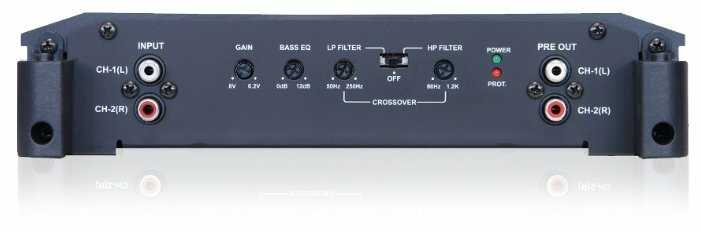 - Выходная мощность на канал (2 Ом): 250 Вт