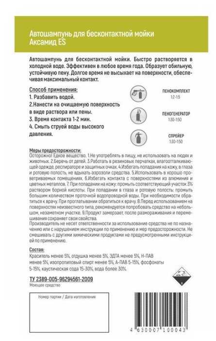 Характеристи Автошампунь для бесконтактной мойки АИС Аксамид ES 1 л (концентрат)