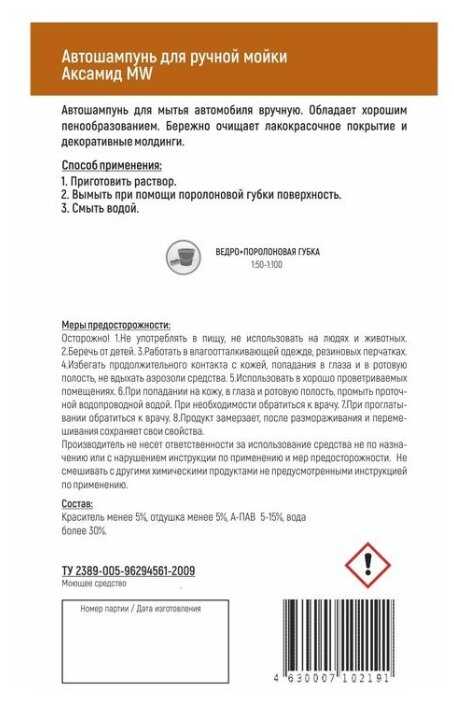 Автошампунь для ручной мойки АИС Аксамид MW 1 л (концентрат)