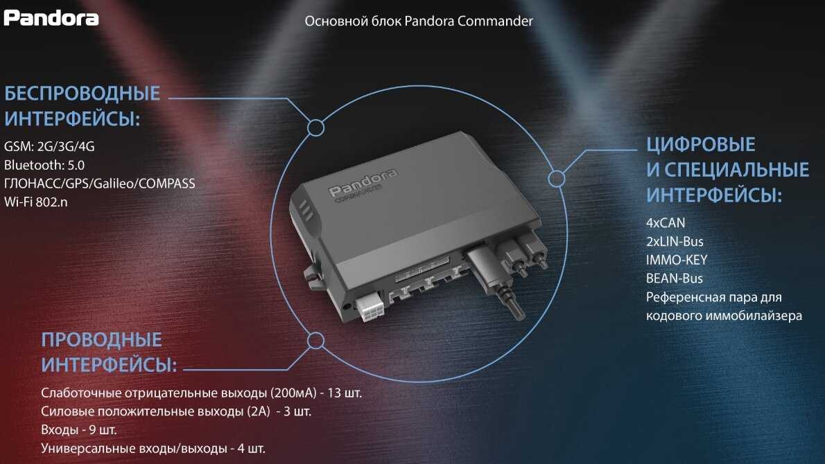Pandora Commander (LTE/GSM, брелок Commander, 4CAN+2FD+2LIN, GPS/ГЛОНАСС, метка BT-785, брелок R-500BT, пьезосирена, микрофон)