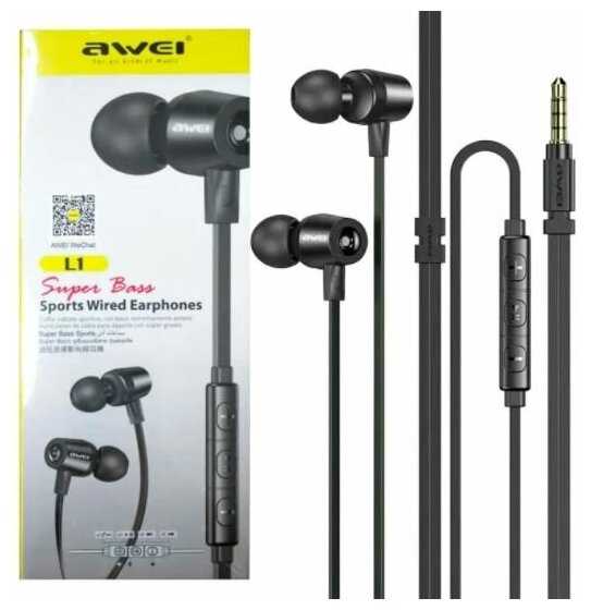 Отзывы о Наушники Awei L1 Super Bass черные с микрофоном и сменными насадками