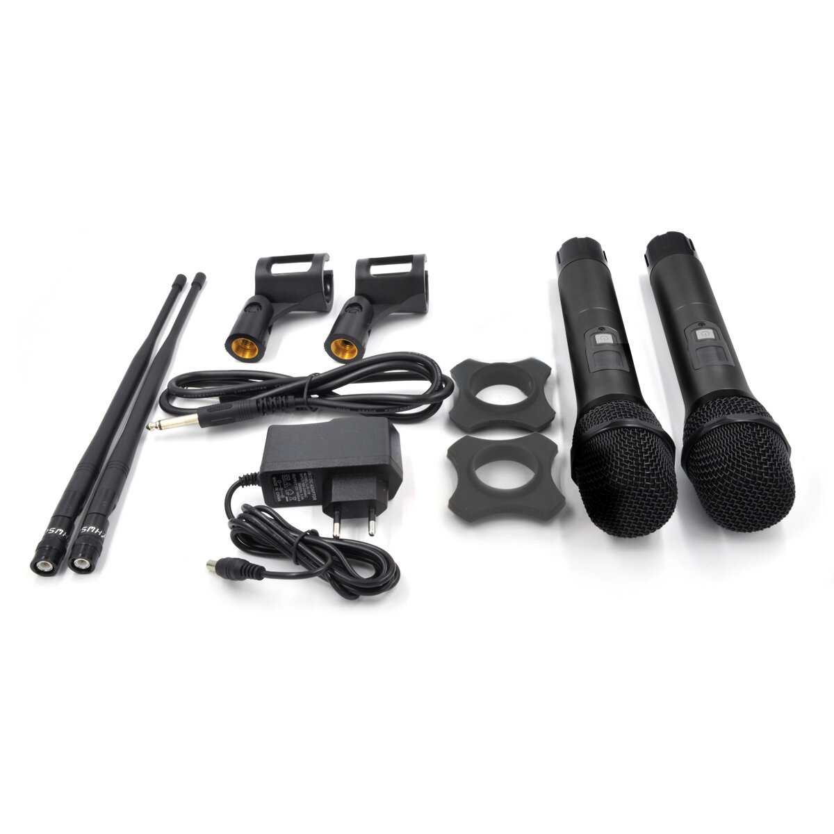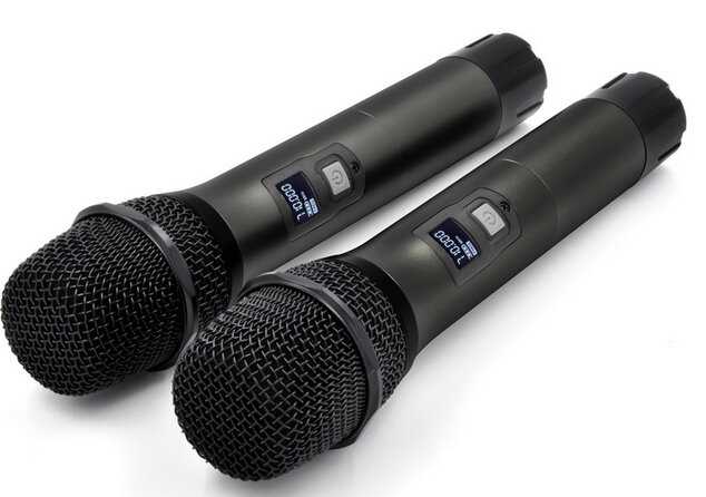 Вполне не плохие микрофоны. Использовались для караоке. Звучат достойно, радиопомех не было.