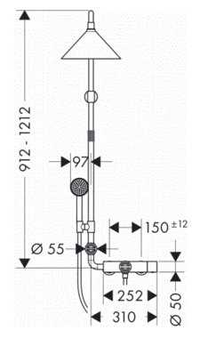 | Дополнительная информация : | высота стойки для душа: 1212 мм, диаметр душевой лейки: 97 мм, диаметр верхнего душа: 279 мм |