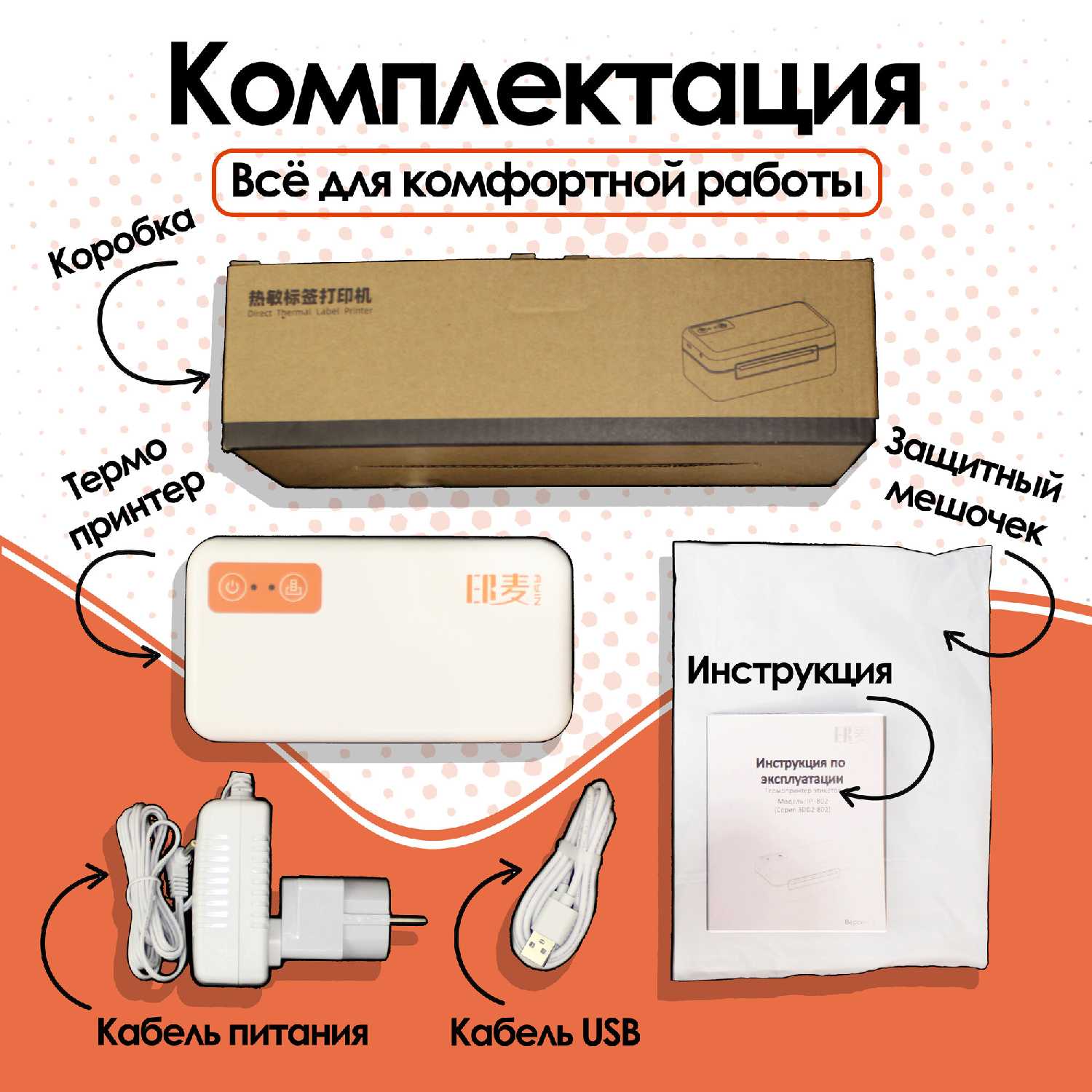 Комплектация : | Коробка, защитный мешочек для термопринтера, термопринтер, кабель подключения USB, кабель подключения к сети, переходник, инструкция на русском языке |