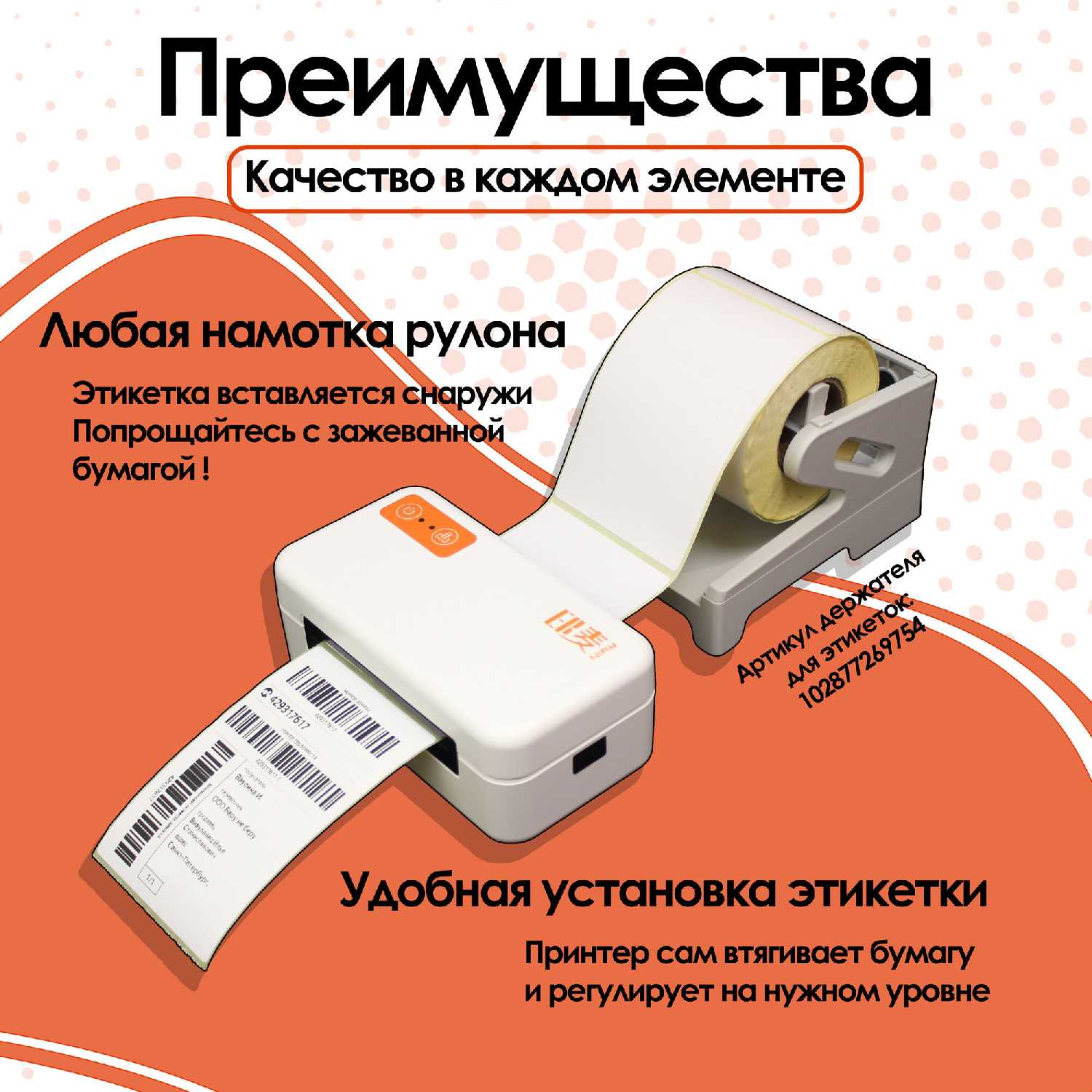 Особенности : | выносной держатель, задание размера этикетки, переносной |