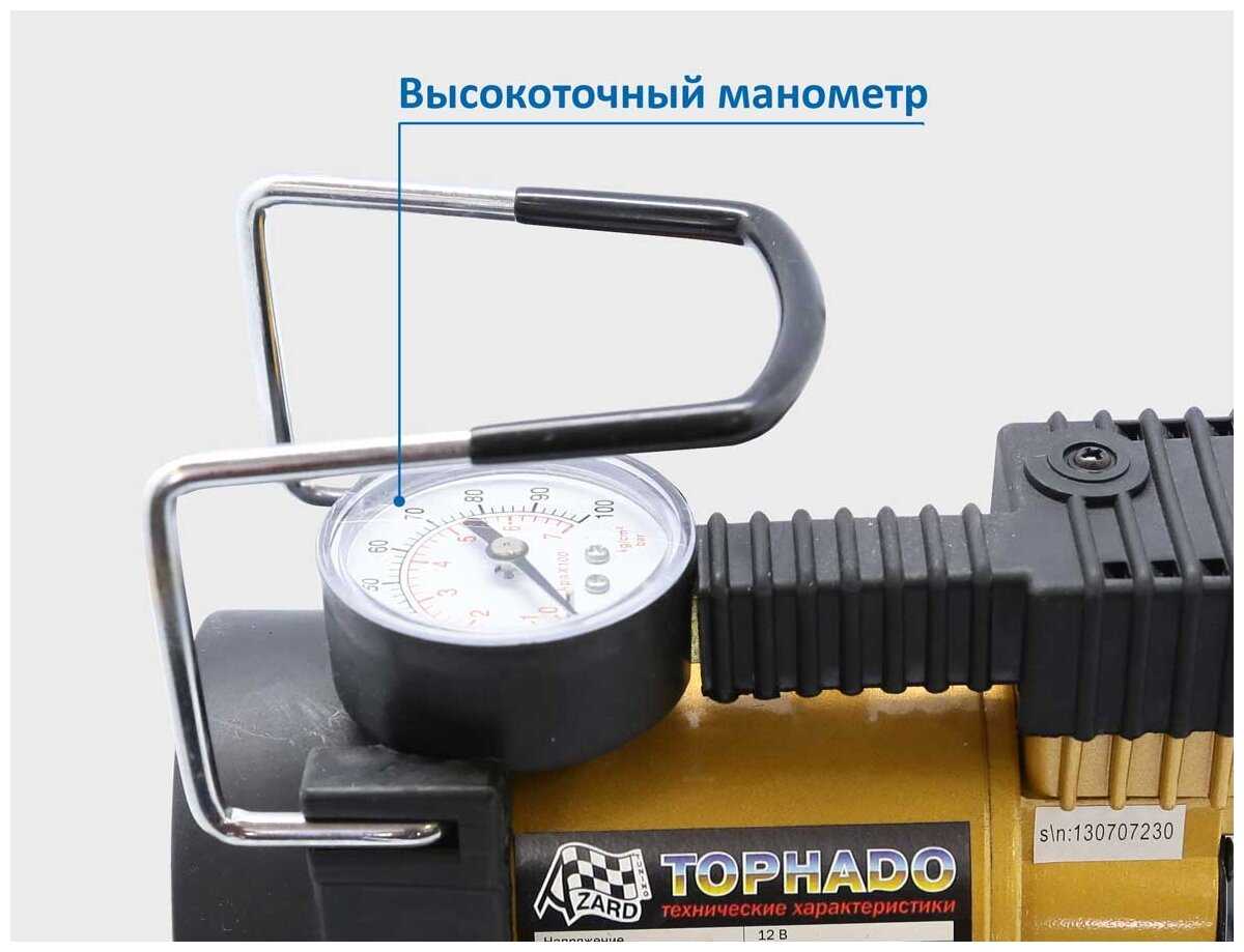 - + Компактный. Длинный кабель питания - 3 метра. Комплект переходников и мешочек. Встроенный манометр.