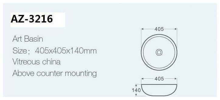 Характеристи Azario Раковина накладная (AZ-3216)