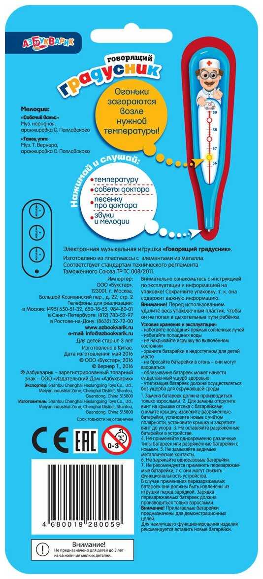 1 отзывов пользователей o Азбукварик Говорящий градусник