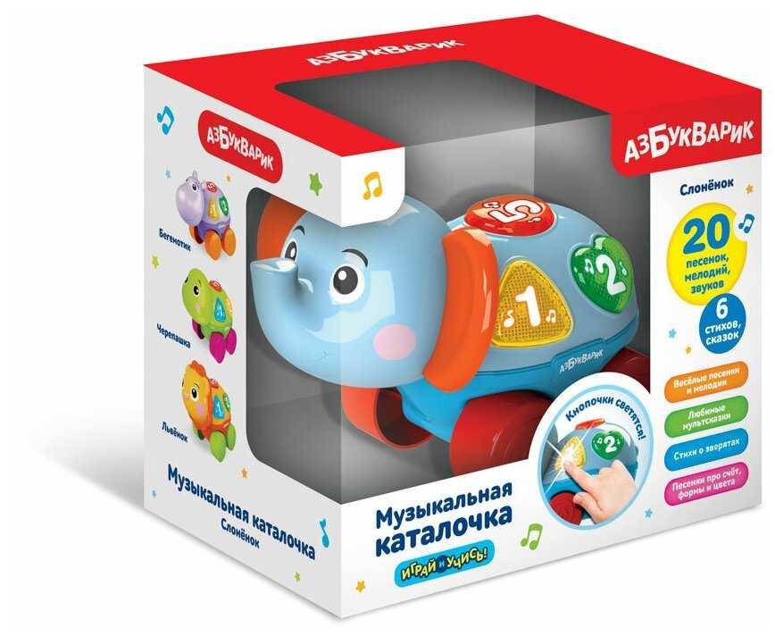 Лучшие цены сегодня на Азбукварик Музыкальная каталочка Слоненок