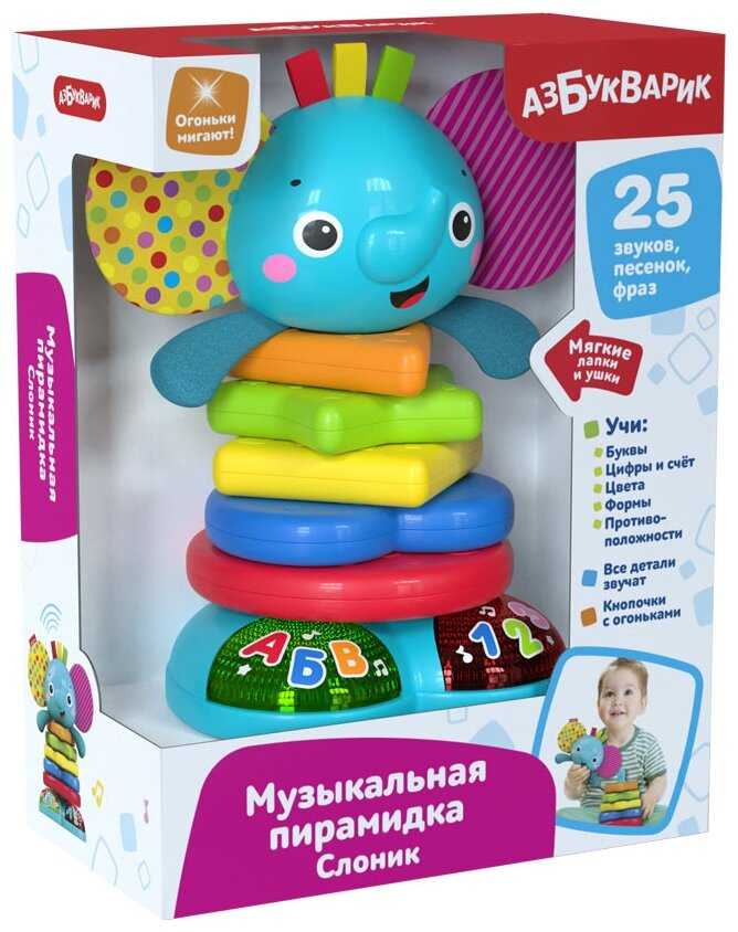 Лучшие цены сегодня на Азбукварик Музыкальная пирамидка Слоник