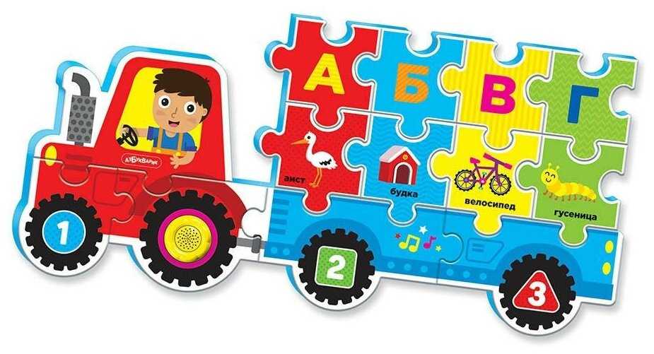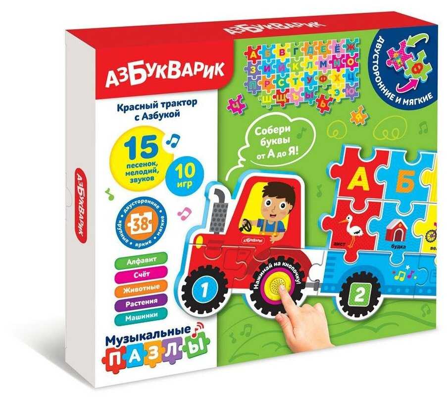 Лучшие цены сегодня на Азбукварик Музыкальные пазлы "Красный трактор с азбукой