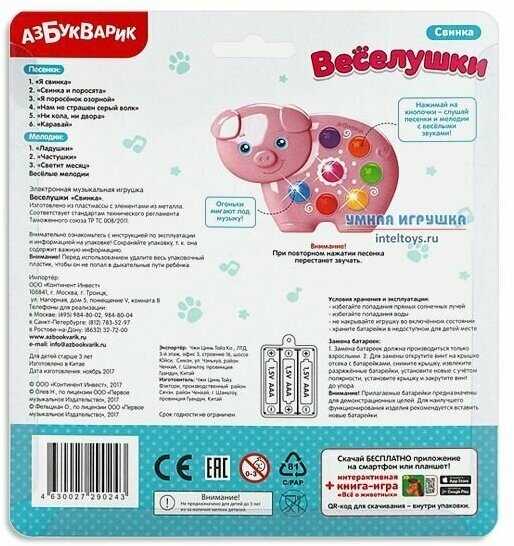 - + Не сильно громкая, песенки разные и достаточно много, батарейки входят в комплект