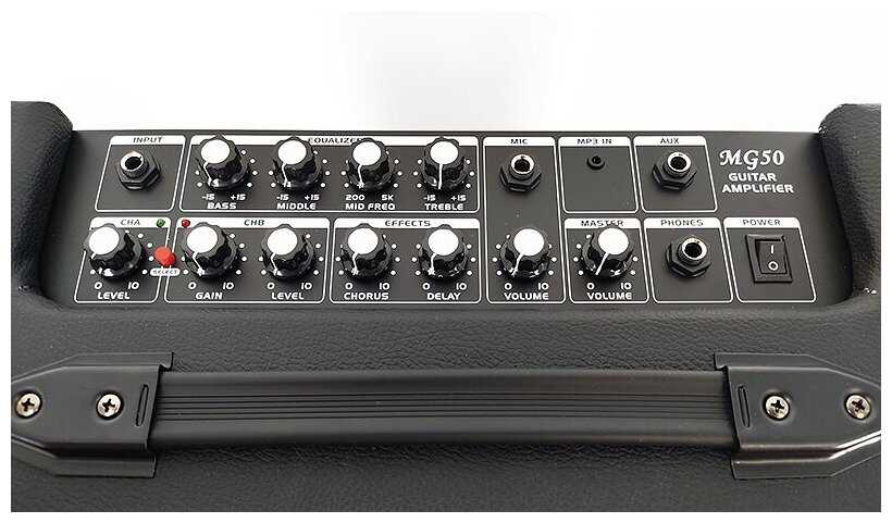 Дополнительная информация : | BG MG50 Усилитель гитарный комбо, 50 Вт, 12", Input, (Clean) Volume, Channel S/ W, (Drive) Gain, Level, Bass, Middle, MID-Freq, Treble, (effect) Chorus, Delay, MIC Input, AUX/MP3 Input Stereo and Headphone. |