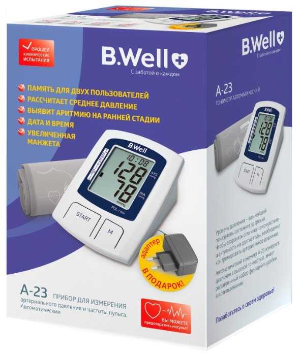 Тонометр B-WELL А-23 приобрел в подарок для мамы. Понравилось, что тонометр точно мерит давление,имеет небольшой размер, довольно широкая манжета, есть функция памяти для двух человек. Из недостатков могу заметить лишь то,что долго накачивает,но это не критично. В общем покупкой доволен. Рекомендую