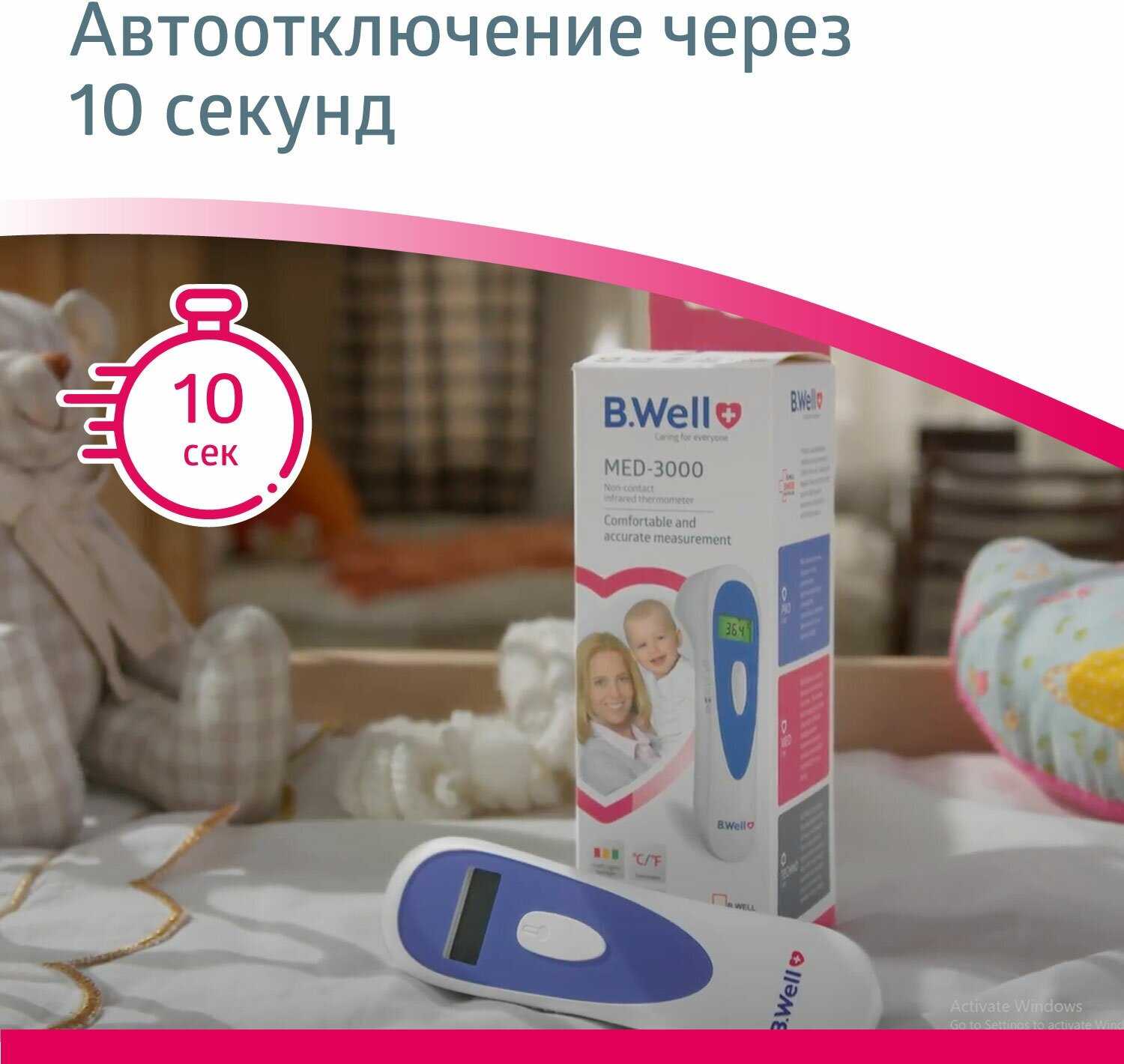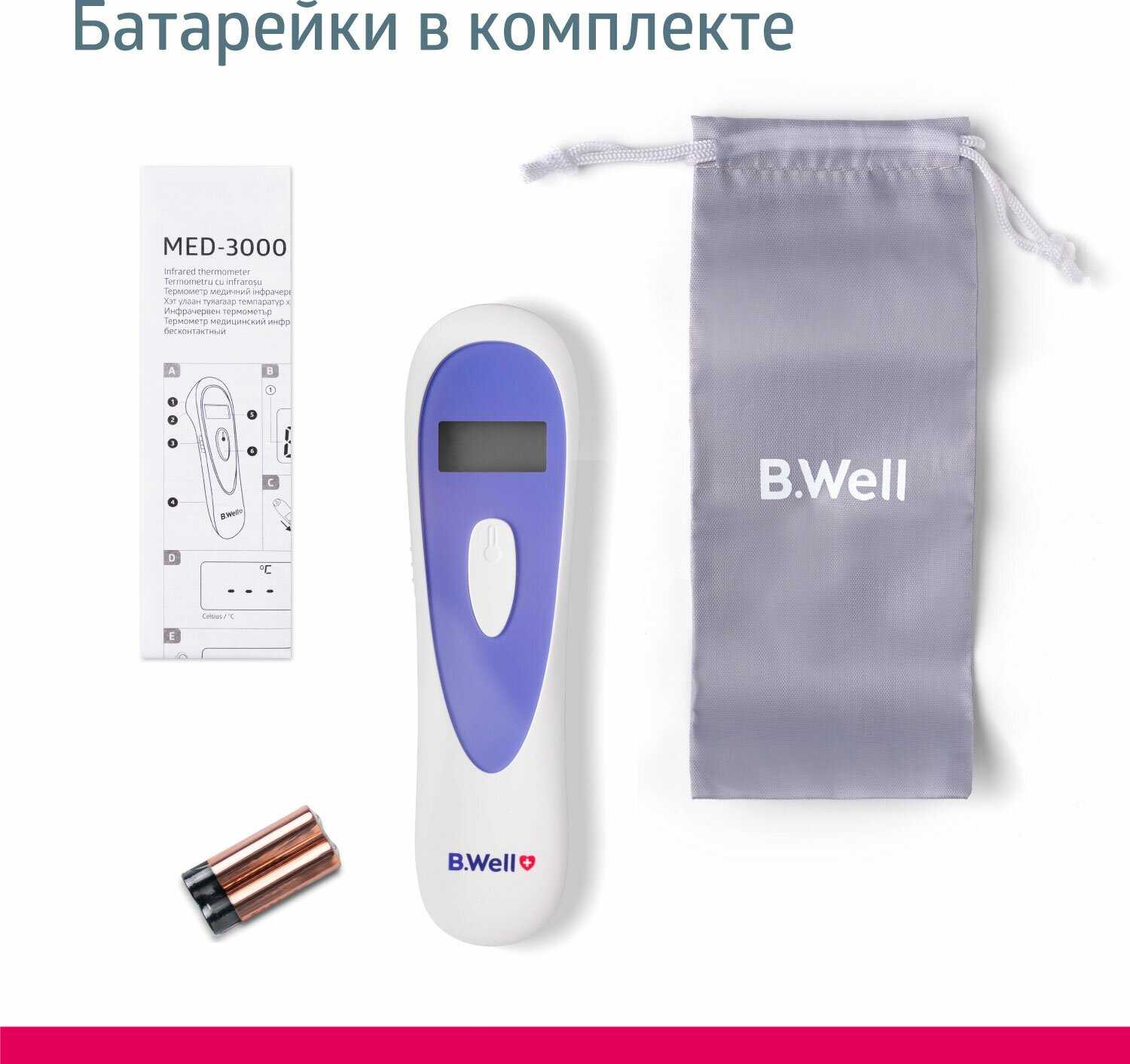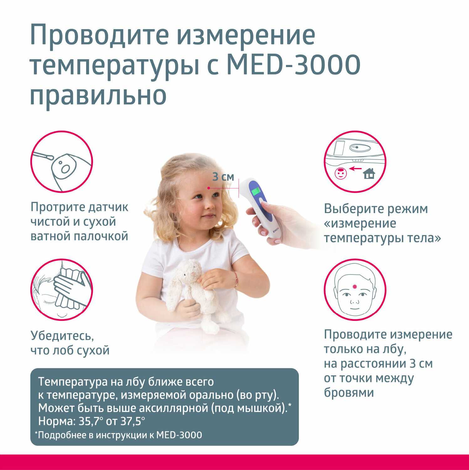 Подробная комплектация : | "1. Термометр медицинский инфракрасный бесконтактный MED-3000 2. Элементы питания: 2 батареи 1, 5В типа ААА 3. Сумка-чехол 4. Руководство по эксплуатации 5. Гарантийный талон 6. Упаковка." |