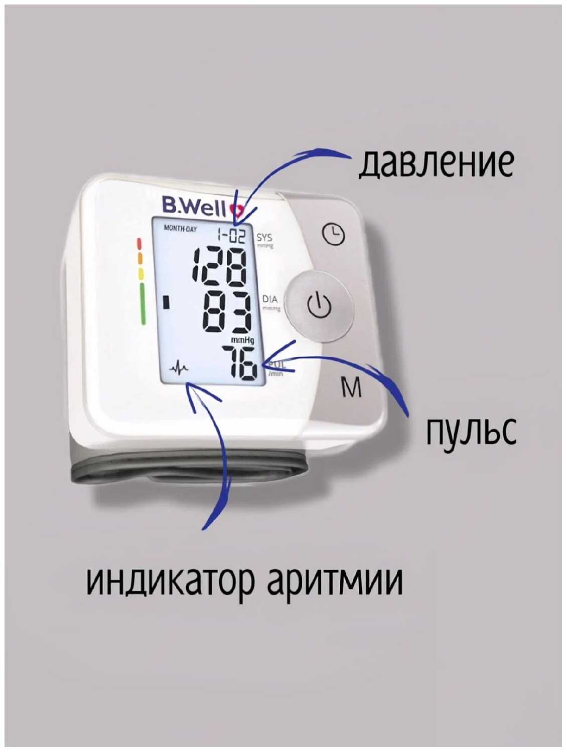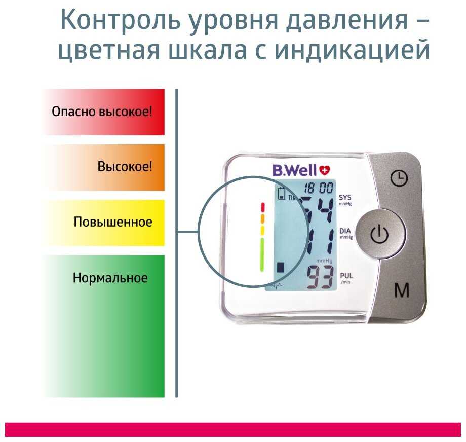 - Индикатор аритмии и цветовая шкала для быстрой оценки уровня давления.
