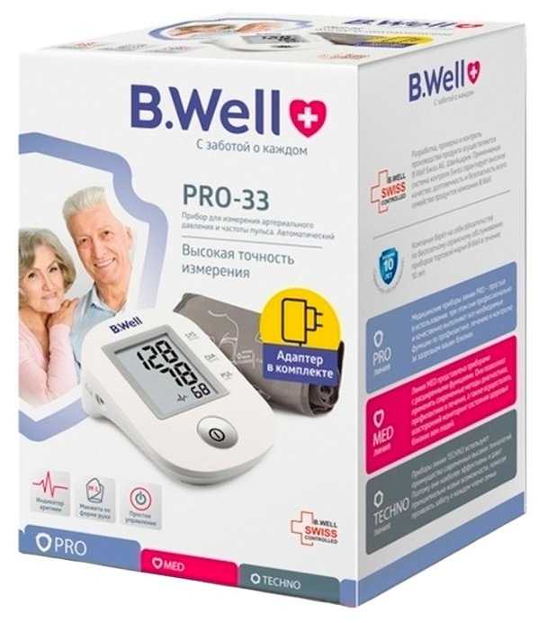 Уже второй такой аппарат. Первый купил 6 лет назад в аптеке около дома, основные критерии были питание от батареек и наличие сетевого адаптера, а также размер манжеты. До сих пор работает исправно, супруга пользуется ежедневно по 3 раза и периодически всё остальные. А тут у родственника сломался хваленый And (покупались оба аппарата вместе, я взял себе B-well только из-за цены, функционал абсолютно одинаковый), было принято решение купить B-well pro-33, так как он выполняет всё возложенные на него обязанности в полном объёме, да и цена дешевле, что немаловажный фактор. Доставили упакованный в пупырчатую плёнку (на радость детям), проверили - всё работает, батарейки и адаптер в комплекте.