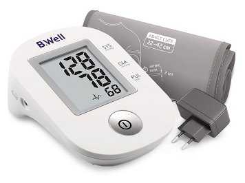 - + Автоматический тонометр B Well Pro-33 прибор для домашнего использования. В комплекте тонометр , манжета ,адаптер питания, четыре батареки ААА. Как и большинство моделей управление одной кнопкой, всё остальное измерение происходит в автоматическом режиме. Манжета для надевания на плечо имеет большой диапазон регулировки от 22 см до 42 и бес проблем подойдёт для большинства рук. Так же имеет съёмный чехол который можно чистить. Небольшой размер позволяет брать его с собой и использовать вне дома.