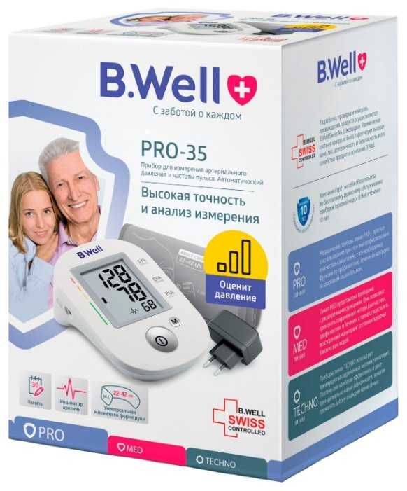 - + Искала тонометр для родителей пенсионеров. Их старый аппарат увезли на дачу на все лето, и решили, что дома тоже должен быть прибор. Запрос был на манжету большого размера, тк у мамы полные руки, чтобы в комплекте была розетка, тк батарейки дорогие, а электричества тонометр берет не много, и бюджет покупки должен был составлять до 2 тысяч рублей. Выбор был между Омрон и B.Well. Почитав кучу отзывов, посмотрев предложения, попала на акцию на B.Well про 35, и купили за 1900. Прибор понравился родителям сразу. Большие цифры, прост в обращении, манжета большая и не сильно сжимает руку при измерении. Компактный, что удобно для путешествий, в сентября брали тонометр на море. В Про 35 есть функция запоминания 30 последних показаний давления, но мы ею не пользуемся, тем более, мама и папа по очереди измеряют давление дру другу, да еще по 2-3 раза в день и спустя 10-15 измерений, сложно понять чей именно был показатель. У производителя B.Well есть модель про 33, особо ничем не отличается от про 35, за исключением запоминаний 30 показаний, но на 300 руб дешевле.