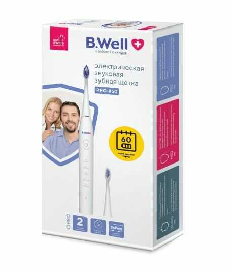 Отзывы о Электрическая зубная щетка B.Well PRO-850, звуковая, 5 режимов, 2 насадки
