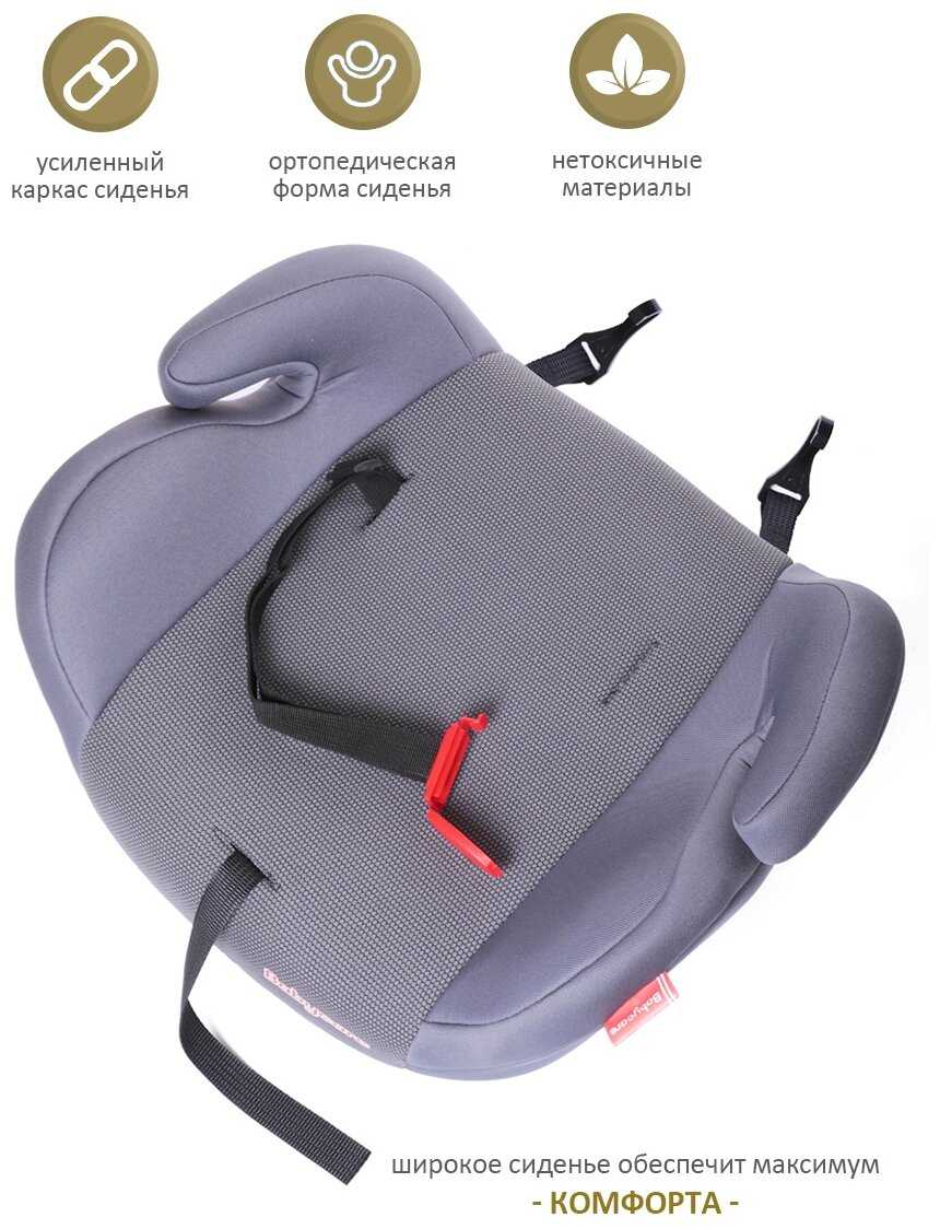 - Отсутствие подголовника компенсируется высотой бустера, поднимающей голову ребенка выше подушки автосиденья.