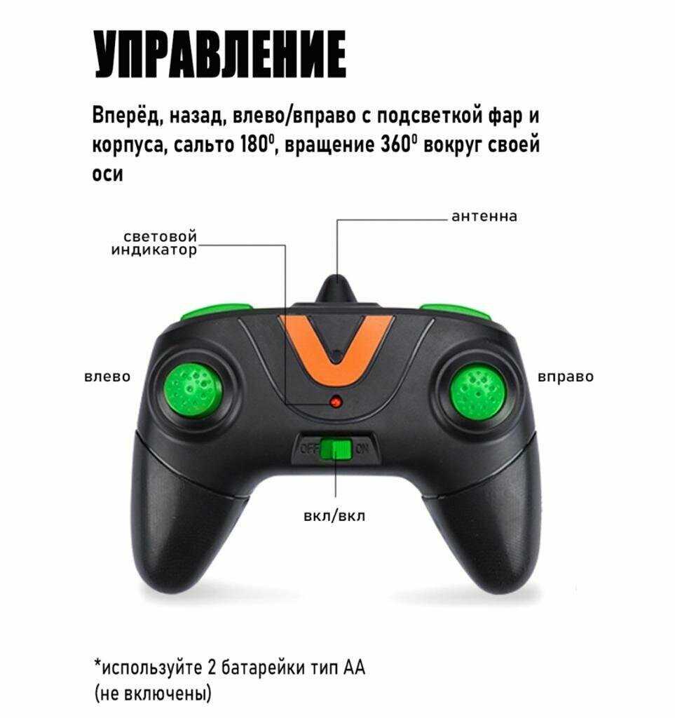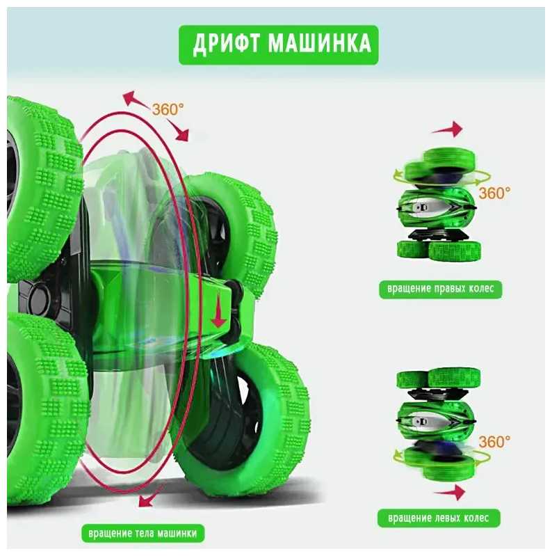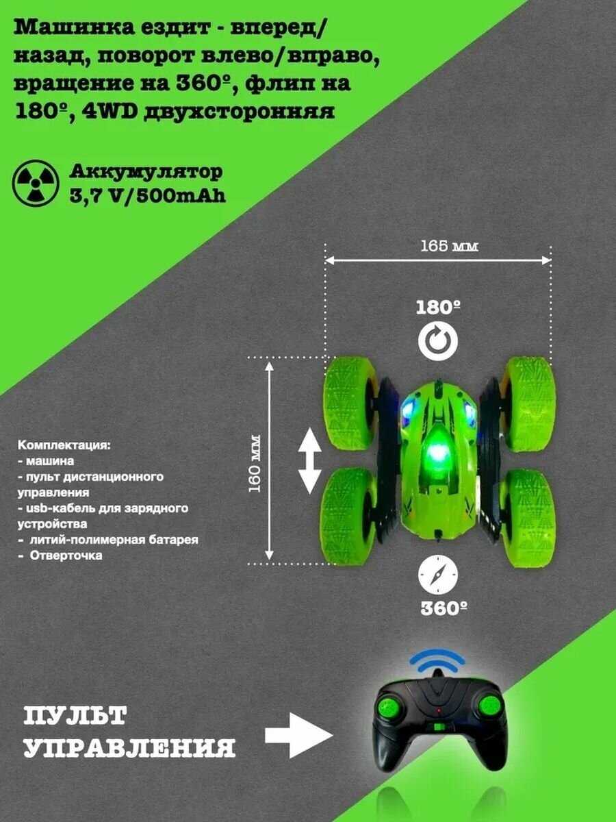 - + Судя по описанию данной модели, трюковая машинка перевёртыш меняет траекторию движения колес на 360 градусов.