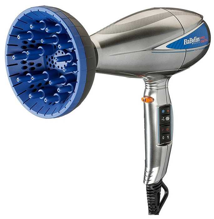 Волосы фен сушит хорошо. Температурный режим какой-то щадящий, может быть за счет функции ионизации. Воздух горячий, но не обжигающий. И сушит он быстро за счет высокой скорости воздушного потока (85 км/ч, так сказано на сайте). Я пользуюсь феном на первой скорости и на третьем температурном режиме. По моим ощущениям именно в таком сочетании скорость обдува минимальна ( при переключении с 3-его темп. Режима на 1-ый скорость почему-то увеличивается). Фен дует очень сильно, волосы разлетаются во все стороны и чтобы их уложить требуется сноровка. Я вначале расстроилась, мой прежний фен не обладал такой мощностью и я укладывала волосы очень просто. Но за несколько раз я наловчилась и теперь укладываю волосы без проблем. У меня даже получается лучше, чем с прежним феном. (Но все-таки первые 2 недели меня так и подмывало сдать фен обратно в магазин. ) И диффузор меня вначале расстроил. Я привыкла к активному диффузору с движущимися пальчиками, которые отлично приподнимали волосы у корней. Здесь опять же пришлось приспосабливаться. Но по истечение месяца я все-таки подружилась с диффузором и научилась им пользоваться. Хотя справедливости ради все же стоит отметить, что активный диффузор все-таки лучше придает объем волосам. А диффузором Babyliss прежде всего проще сушить длинные и объемные волосы по всей длине. Холодным обдувом и турбо-режимом я практически не пользуюсь. Фен настолько мощный, что турбо-режим может понадобиться только в авральной ситуации. А холодным обдувом, честно говоря, я просто забываю воспользоваться. И в действительности он не очень-то и холодит, немного прохладнее, чем основной, но не холодный. И еще один минус: надписи возле переключателей быстро стерлись, прям за несколько дней. Теперь только по ощущениям можно понять где какая скорость или температура, где турбо-режим, а где холодный воздух. Итог. В общем-то все неплохо. Волосы можно высушить очень быстро, укладку красивую сделать тоже можно. Но я все-таки жалею, что не рассмотрела в качестве покупки фен Ровента с активным диффузором, ведь были такие в продаже. Мне захотелось разнообразия, я его получила. Фену поставила бы 8 баллов из десяти. В основном за разлетание волос при укладке. Все-таки я не парикмахер и мне трудно справляться с такой скоростью. Желаю всем удачных покупок!