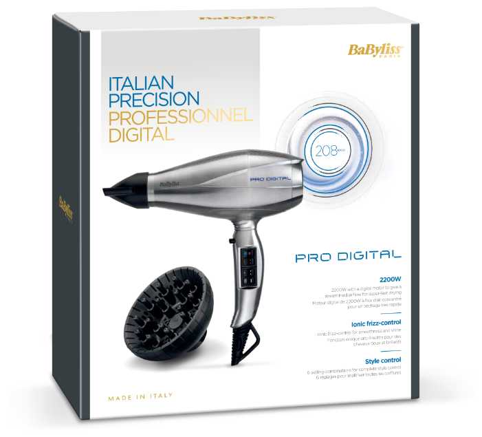 Профессиональное происхождение фена, Babyliss держит марку. Супер! Решила порадовать себя и купила это чудо, до этого были другие фены, которые не справлялись с простейшей сушкой, не говоря уже об укладке волос. Этот фен справляется со всем: сушкой и укладкой волос любой сложности. А еще вещи сушит при необходимости на ура! На официальном сайте он позиционируется как: обычный фен Обычный, да не совсем, он достаточно тяжелый, поэтому в первое время к нему не так-то просто привыкнуть. Поначалу у меня уставала рука и я обжигала им кожу головы пару раз. Неприятно, конечно, но не смертельно. мощность 2200Вт Да, оправдывает свою мощность, сушит моментально, но никогда не пересушивает волосы, правда шумит и дует как сумасшедший. функция подачи холодного воздуха Идеально переключается с горячего на холодный (действительно холодный) воздух примерно за 1-2 секунды. функция ионизации Оценить в полной мере не могу, статического электричества за моими волосами никогда не наблюдалось, зимой шапок не ношу, взяться пушистости неоткуда. Фен имеет 2 кнопки, по 3 режима на каждой, итого 6 режимов. Кнопки неудобные. Съемная задняя решетка, якобы продлевающая жизнь фену, но пользуюсь почти год, а пыли там нет. Не очень-то полезная штука, можно было обойтись и без нее. Может лет через 5 себя оправдает. Очень качественный и длинный шнур 2,7м с удобной петелькой. Узкие концентраторы. что очень удобно, они практически одинаковые, что не очень разумно. На самом фене указано, что мотор данного агрегата изготовлен в Италии.