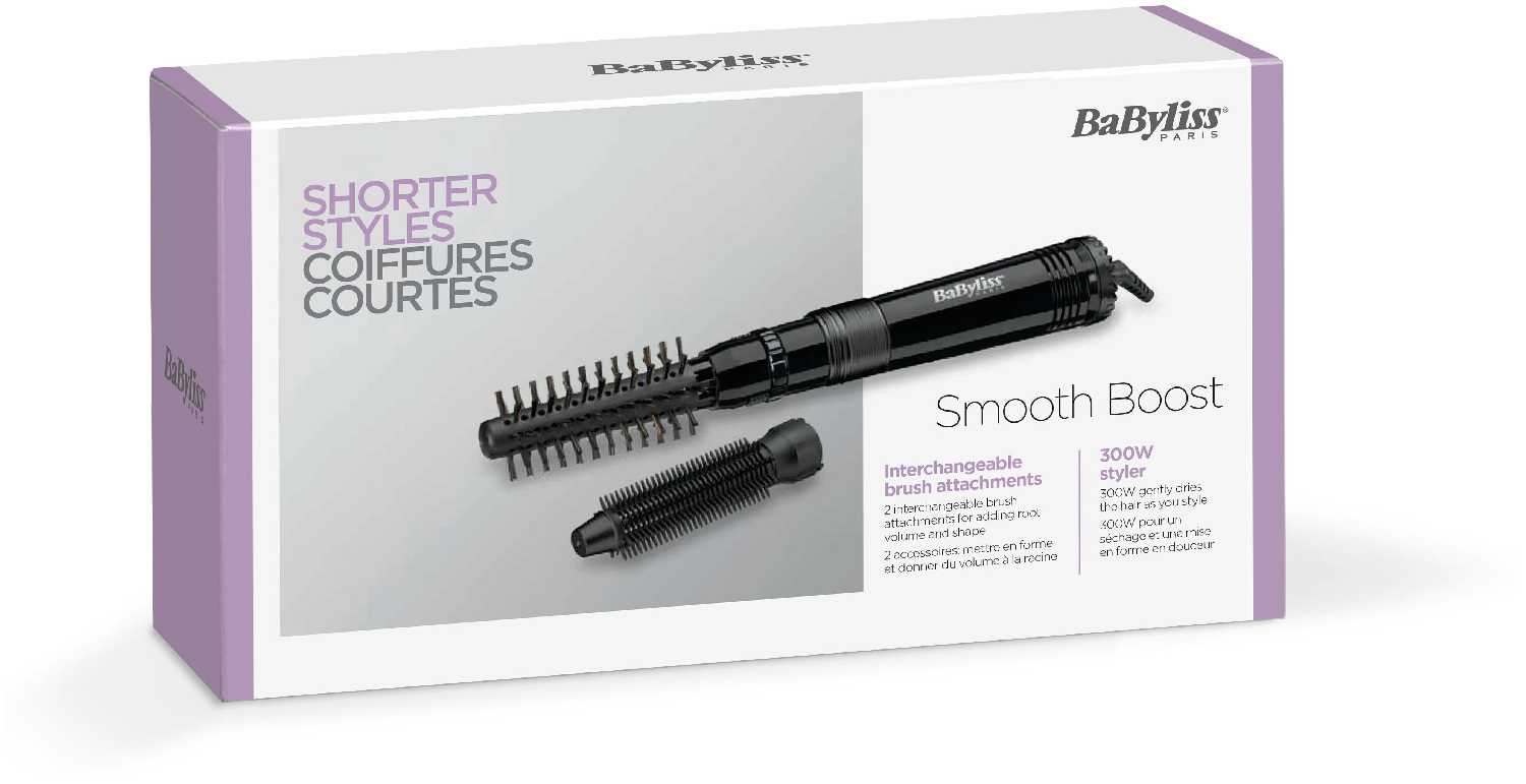 - Компактный диаметр щетки (до 5 см) идеален для коротких стрижек и детальных укладок.