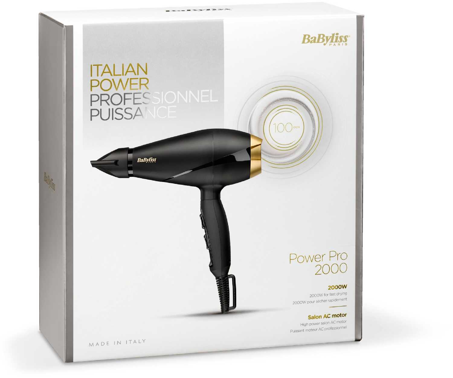 - Асинхронный мотор переменного тока обеспечивает стабильный и сильный воздушный поток (2000 Вт), что сокращает время сушки даже густых и длинных волос до 5–7 минут.