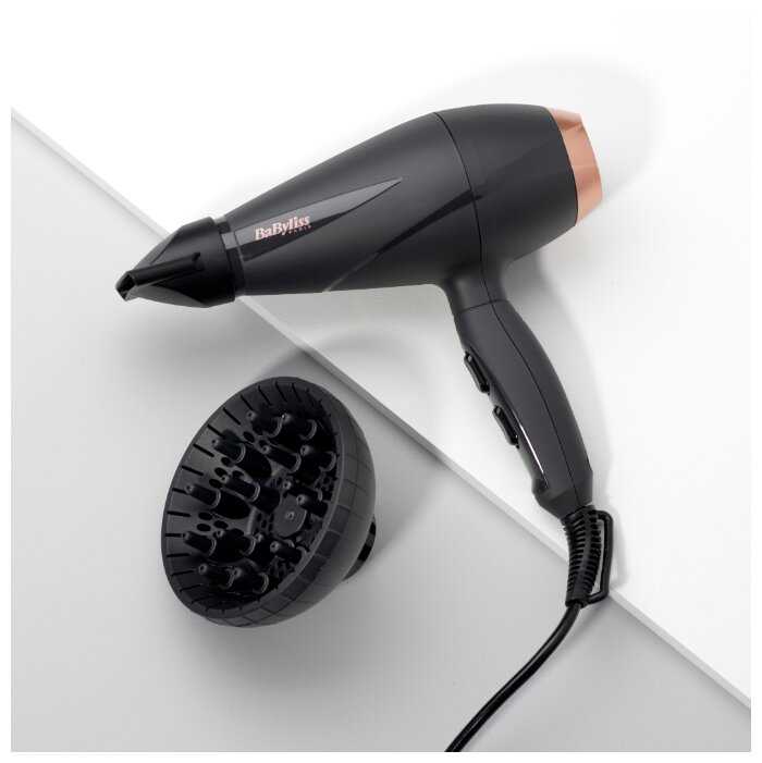 - + Очень удобный в эксплуатации. Не тяжёлый. Для своих 2100W очень быстро сушит волосы. Сравнивала в магазине с феном Rowenta с аналогичным характеристиками и такой же, мощности, BaByliss сильнее дует, легче и компактнее в руке. Хороший диффузор и концентратор.Длинный шнур