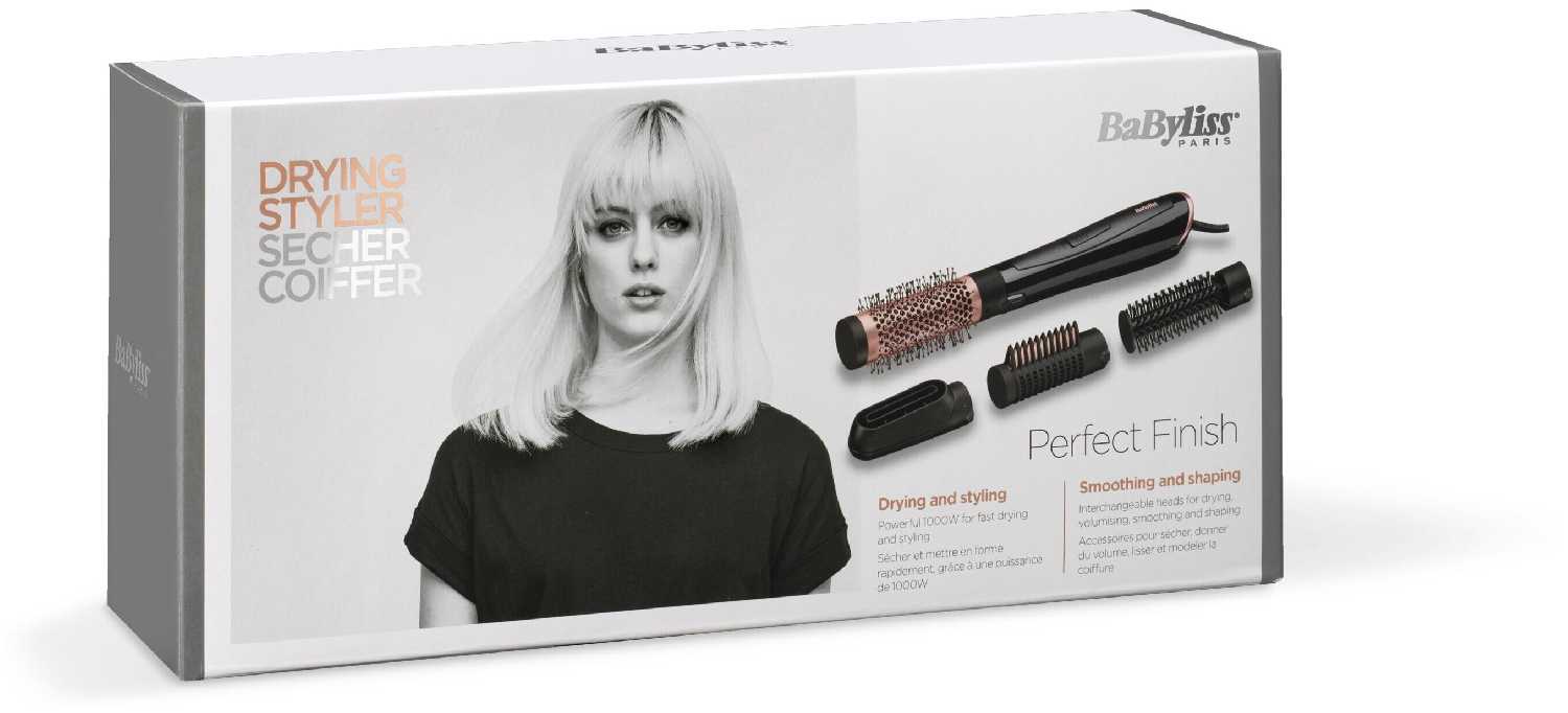 - Много насадок в комплекте, включая круглую щетку для объема и брашинг с натуральной щетиной для приглаживания.