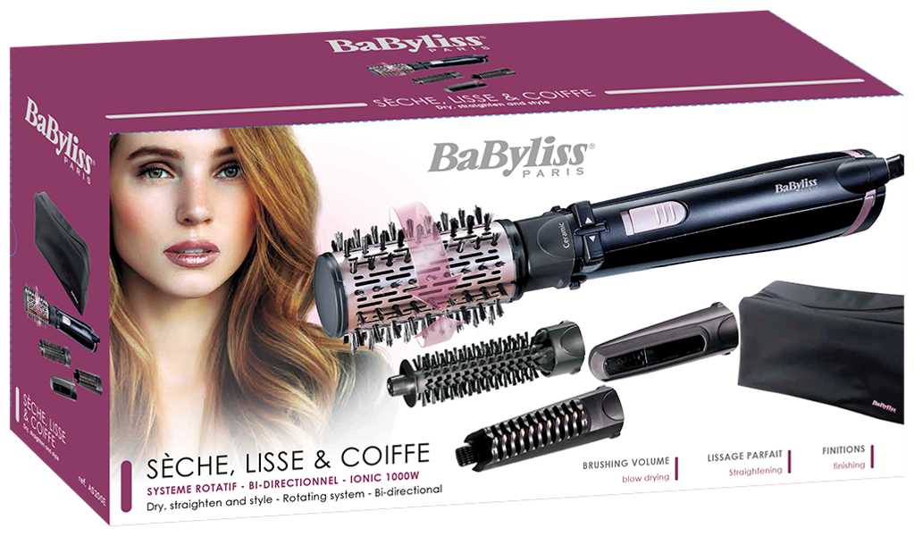 | Дополнительные функции : | автоматическое вращение насадки, ионизация, независимая регулировка нагрева и воздушного потока, подача холодного воздуха |