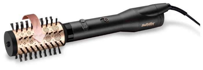 Очень хочется оставить отзыв именно про этот товар от М-Видео. Долго искала фен-щетку для своих тонких и непослушных волос, лишенных всяческого объема, и вот она - Babyliss AS970E!!! Данная модель профессиональная и это сразу чувствуется. Просто потрясающая вещь! В первую очередь хочется отметить внешний вид этой модели: таких больше нет ни у одного из производителей) стильный, качественный, берешь в руки и понимаешь сразу, что это действительно Вещь! А какое красивейшее сочетание цветов: черный матовый с золотым, мне прям очень нравится такое сочетание. Не тяжелый, в руке держать очень удобно, поскольку диаметр рукояти не большой. Насадок 4 для полета любой фантазии, я сама прически пока не делала, только укладывала и поднимала у корней, потрясающий объем получается, даже для моих тонких и не густых волос. Насадки крепятся очень прочно, основательно, нет ощущения, что со временем могут "разболтаться". Кнопки переключения и кнопки вращения расположены в правильном месте, что не дает возможности случайного нажатия. Насадка в виде массажки - это вообще отдельная история: хотя она предназначена немного для другого, я придаю ей объем у корней волос за 2-3 минуты, когда утром нет времени долго колдовать над прической, просто поднимаю волос, прикладываю массажку эту к корням и вращаю круговыми движениями поочередно по всей окружности головы, потом просто прохожусь поверху волос, немного, как бы, расчесывая, получается хороший объем у корней. Волос не выдирает, как пишут тут в отзывах, скорость вращения умеренная, отпускаешь кнопку, вращение останавливается, каким образом может выдираться волос, не понятно. Еще пишут, что нет функции вращения на холодном воздухе. Хочется спросить: "А она вам зачем, именно на холодном воздухе"!? На остальных вращается и этого вполне достаточно. Еще хочется написать про заявленную мощность в 650 Вт. В магазине включала для сравнения с другими фен-щетками, мощностью в 800 и 1000 Вт. В сравнении с мощностью в 800 Вт разницы не почувствовала, разве что другие фены шумнее, а в 1000 Вт очень горячо даже руке и даже на первом режиме, кожу головы однозначно будет обжигать, особенно чувствительную. А этот фен щадящий и достаточно тихий. Стоит своих денег однозначно! Одним словом, очень довольна покупкой, спасибо производителям и М-Видео!